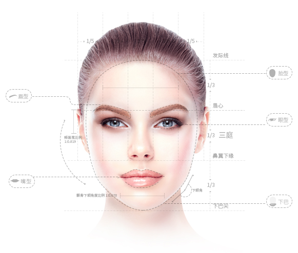 特征点定位,识别出脸型、眉毛、眼型、鼻子、下巴、嘴唇,五官比例等特征。